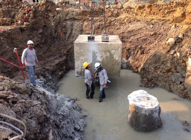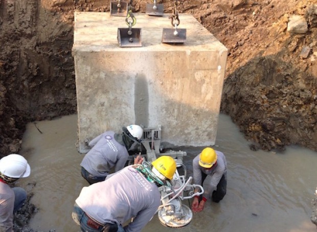 งานตัดPile Cap ขนาดเส้นผ่าศูนย์กลาง 1.0 เมตร ด้วยโซ่ตัดเพชร โครงการ หลังสวนวิลเลจ กรุงเทพฯ