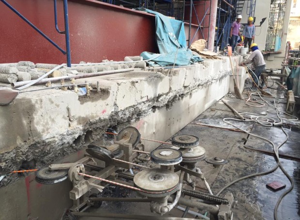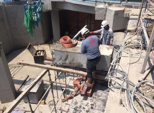 งานตัดคานใต้ท้องพื้น หน้าตัดขนาด 0.88x1.80 เมตร ด้วยWire Saw โครงการ Teminal 21 Korat