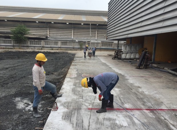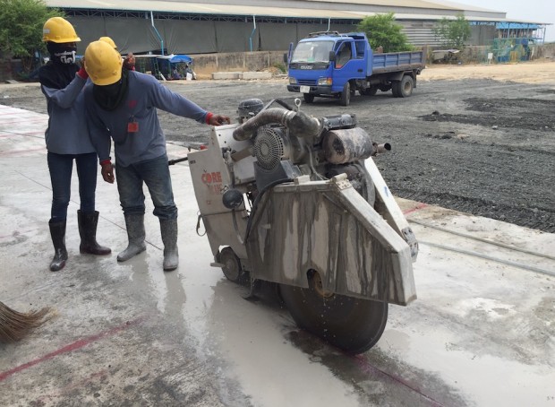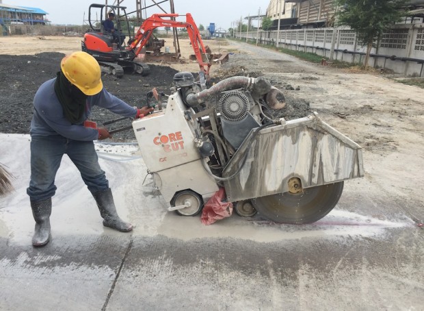 งานตัดพื้นถนนหนา 250mm.เพื่อตอกเสาเข็ม ด้วยรถเดินตัด Project: LATEX SYSTEMS