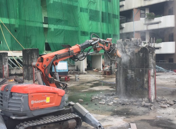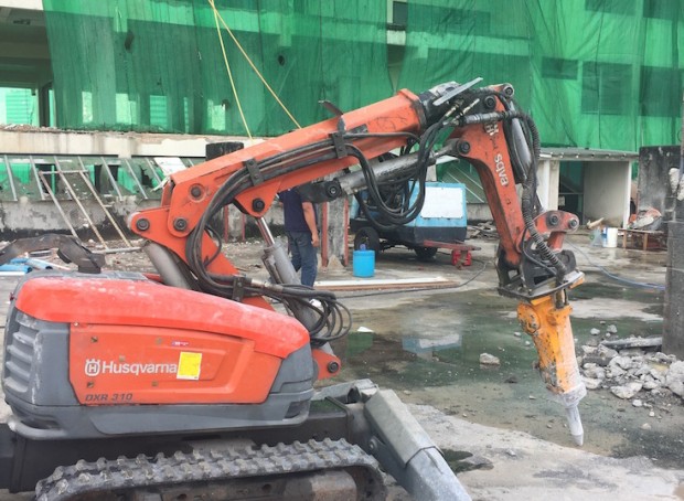 งานสกัดเสาขนาด 0.40x0.80x1.00m. ใช้เวลา 10นาที/ต้น ด้วยROBOT DXR300 โครงการลาดพร้าว ซอย4