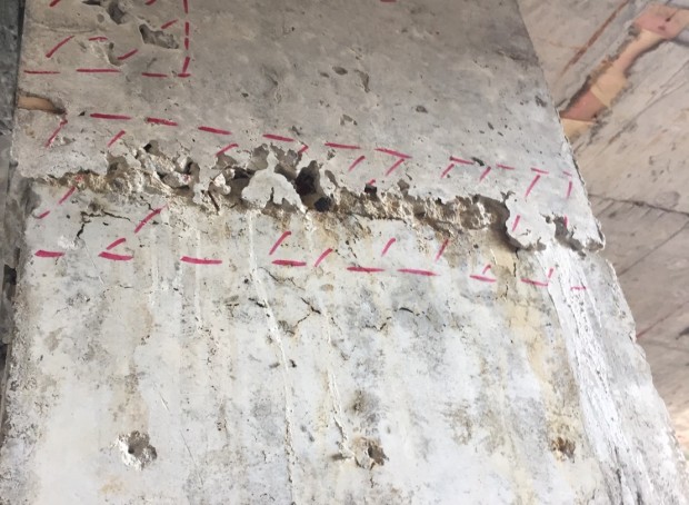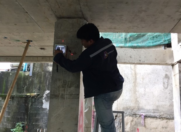 งานตรวจสอบโพรงในเสาคอนกรีตด้วยเครื่องGPR StructureScan เพื่อซ่อมเสา