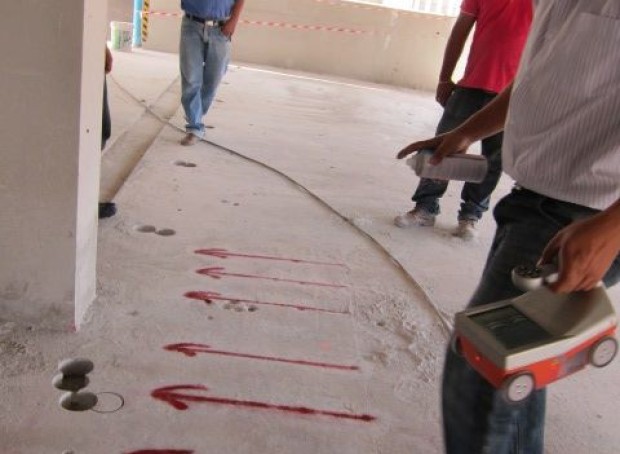 งานตรวจสอบตำแหน่งลวดสลิงรับแรง โครงการTC Green Condo-Rama 9 เพื่อตัดโครงสร้างพื้น