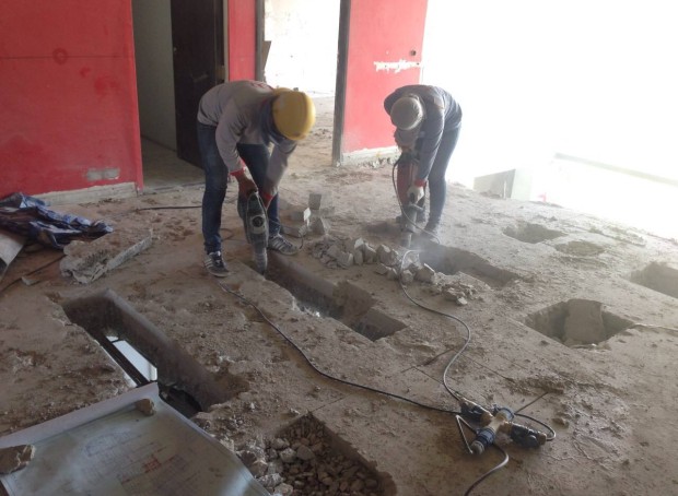 งานสกัด, งานติดตั้งหัวAnchorage, งานเทปูนเกร๊าท์ล็อคสลิงพื้นPost-Tension ระบบUN-BONDED โดยวิธีBONDED LOCK เหมาะกับงานพื้นที่ถูกตัด เพื่อให้แนวลวดสลิงรับแรงในพื้นที่ถูกตัดสามารถรับกำลังได้ตามปรกติ