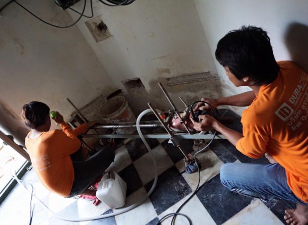 งานตัดความชื้นของโครงสร้างด้วยวิธีStich Coring และเกร๊าท์ตัดความชื้น เพื่อป้องกันไม่ให้ความชื้นสู่เสา หรือผนังอาคาร ส่งผลให้อาคารมีอายุการใช้งานนานมากขึ้น อีกทั้งยังสามารถทาสีเพื่อความสวยงานของโครงสร้างที่อยู่เหนือแนวที่ทำการตัดความขื้นได้