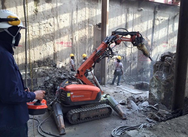 งานสกัดโครงสร้าง หรือฐานเครื่องจักร ด้วยหุ่นยนต์รื้อถอน (ROBOT) น้ำหนัก 2.0 ตัน สามารถทำงานบนอาคารได้ เหมาะกับงานสกัด รื้อถอนโครงสร้างอาคาร และฐานเครื่องจักร เช่น โรงงาน และอาคารที่ปิดปรับปรุง