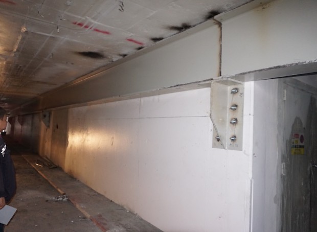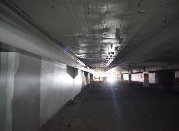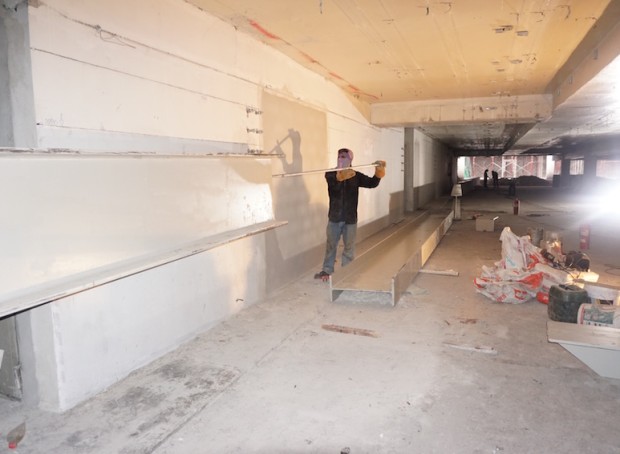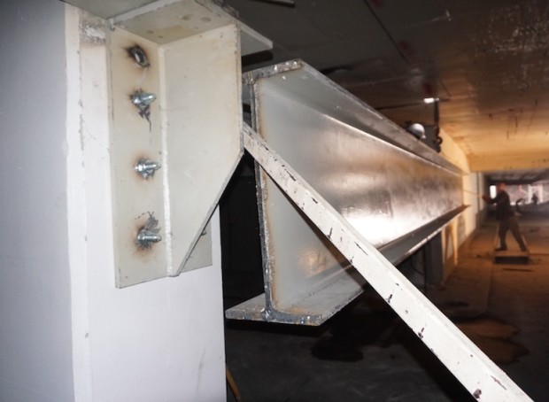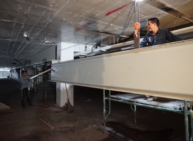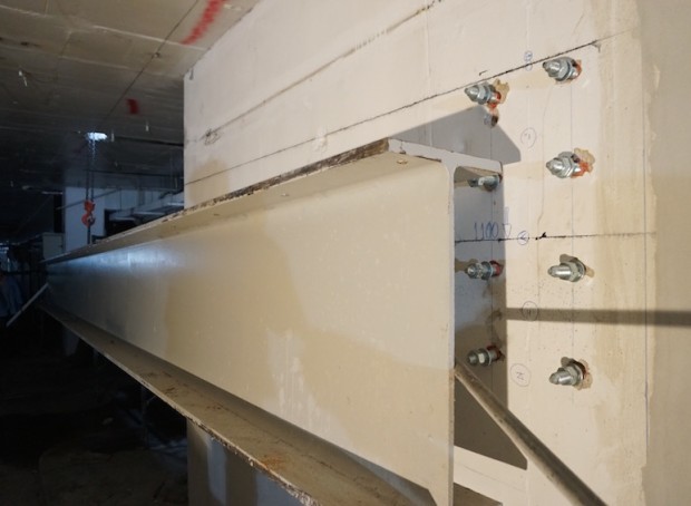 งานเจาะติดตั้งแท่งเกลียวเหล็ก เพื่อยึดบีมเหล็กรับกำลังพื้น โครงการศูนย์การค้าซีคอน สแควร์ ถนนศรีนครรินทร์