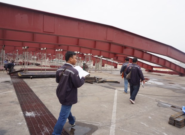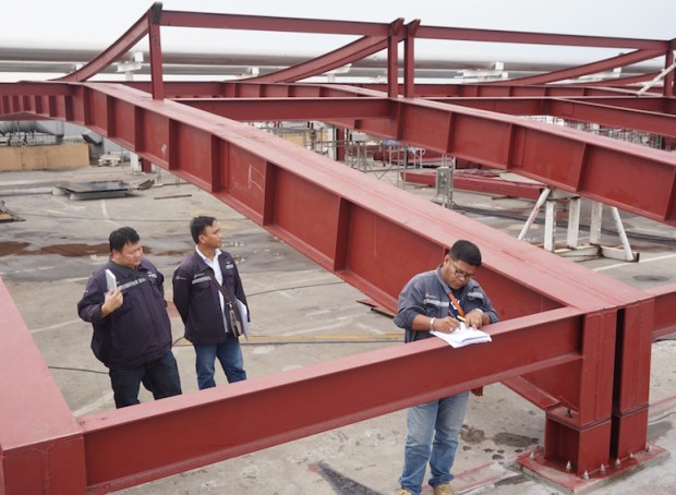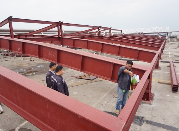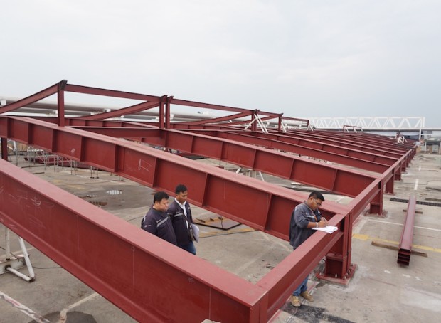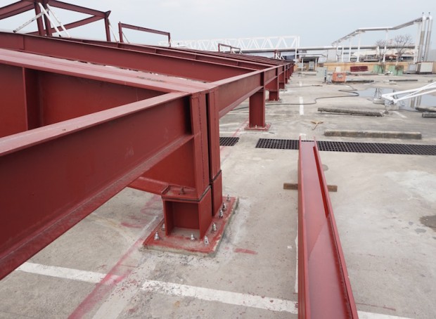 งานเจาะติดตั้งแท่งเกลียวเหล็ก เพื่อยึดบีมเหล็กรับกำลังพื้น โครงการศูนย์การค้าซีคอน สแควร์ ถนนศรีนครรินทร์