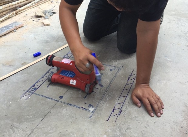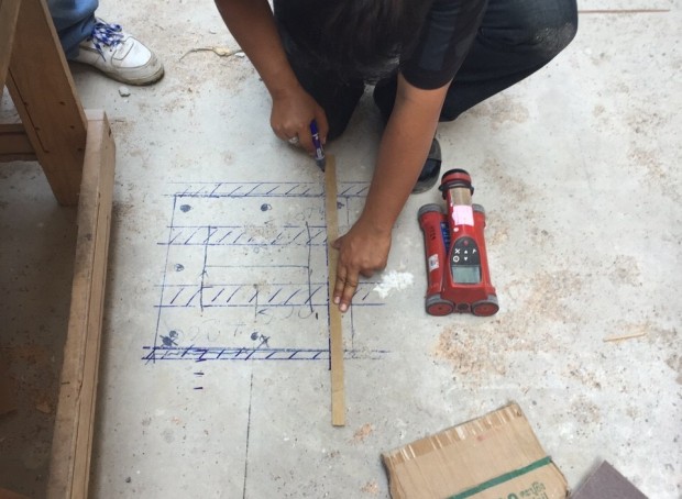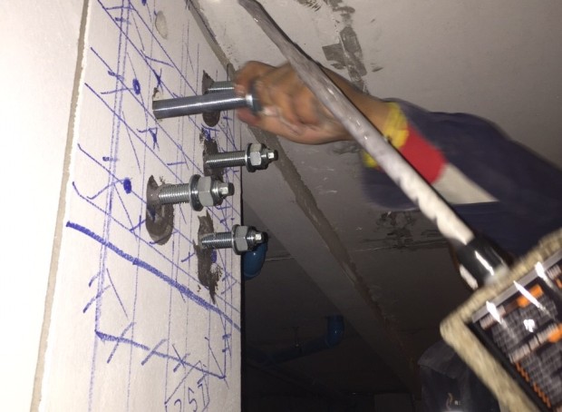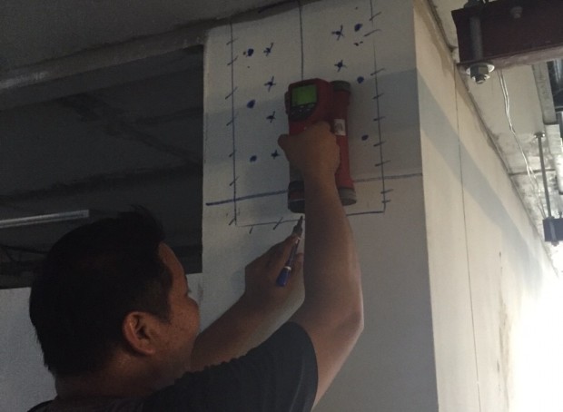 งานตรวจสอบตำแหน่งเหล็กด้วยเครื่องFerroscan PS200 เพื่อเจาะเสียบแท่งเกลียวเหล็ก (Threaded Rod) ด้วยB-BOND EPOXY