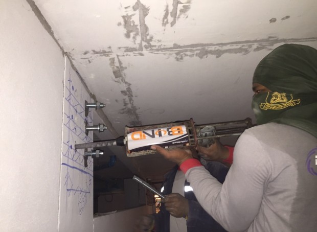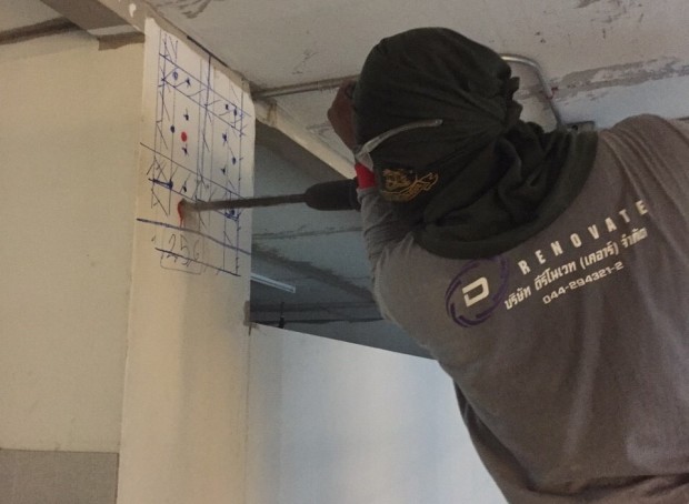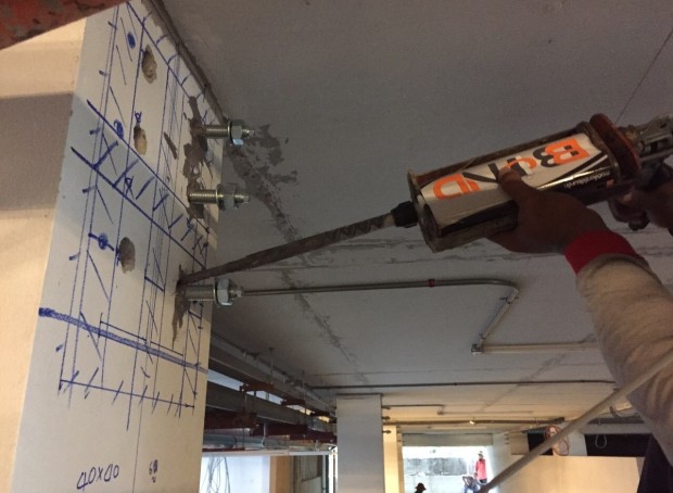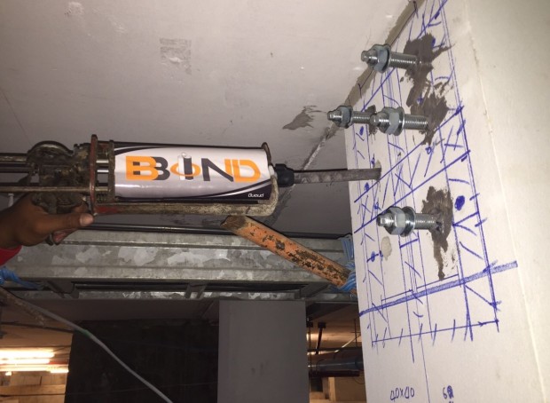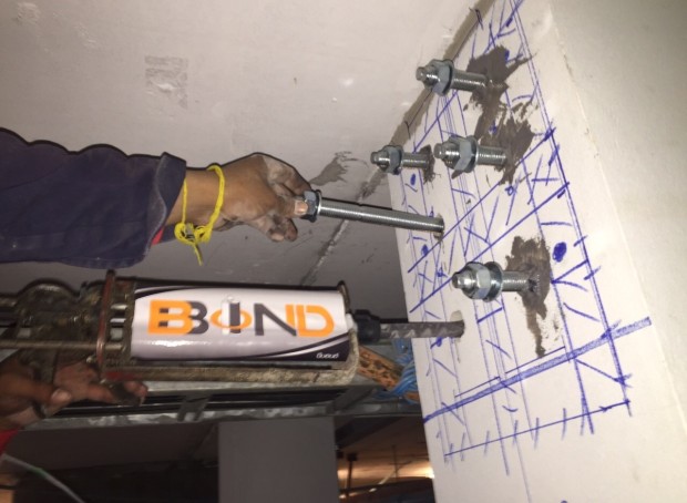 งานเจาะติดตั้งแท่งเกลียวเหล็ก ด้วยB-BOND Epoxy
