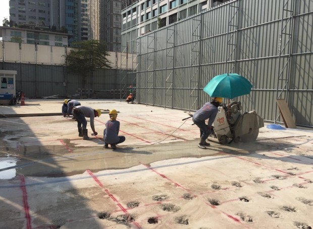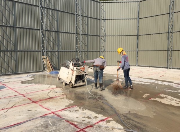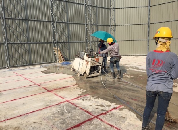 งานตัดพื้นด้วยรถตัด(Floor Saw) หนา 250mm พร้อมขนย้ายชิ้นคอนกรีตออกนอกพื้นที่ หน่วยงานหลังสวน วิลเลจ