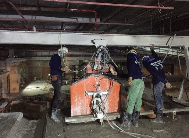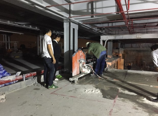 งานตัดพื้นชั้นดาดฟ้า และลานจอดรถ ด้วยWall Saw โครงการ ซีคอนสแควร์ ถนนศรีนครินทร์ - กรุงเทพฯ