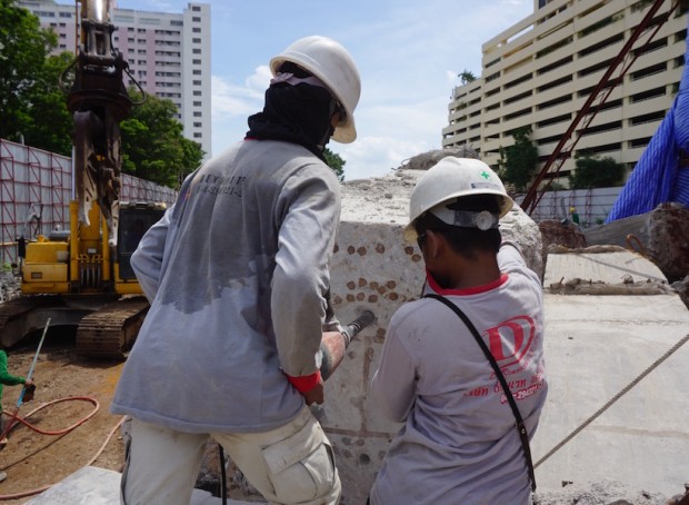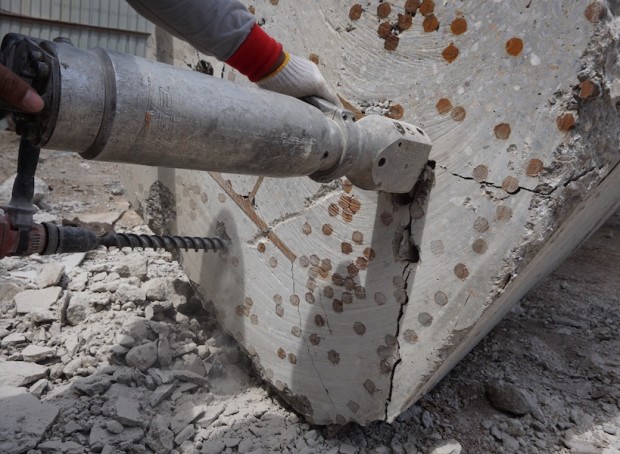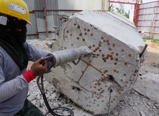 งานเบ่งเสาคอนกรีต ด้วยเครื่องSpliter โครงการNRDD Chaophaya