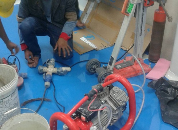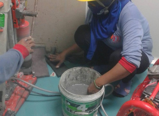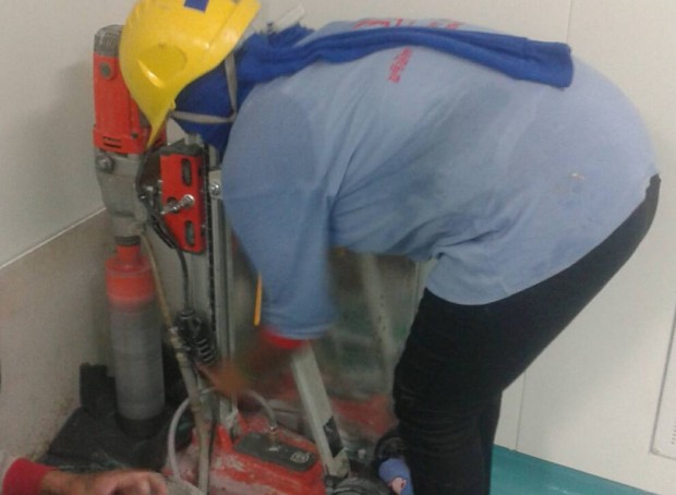 งานCoringพื้น หนา 30cm.โรงงานยานูทริคเคมีคอล จ.สระบุรี หลังจากตรวจสอบเหล็กในคอนกรีตด้วยเครื่องStructureScanแล้ว