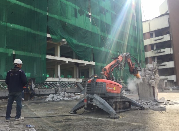 งานสกัดเสาขนาด 0.40x0.80x1.00m. ใช้เวลา 10นาที/ต้น ด้วยROBOT DXR300 โครงการลาดพร้าว ซอย4