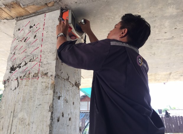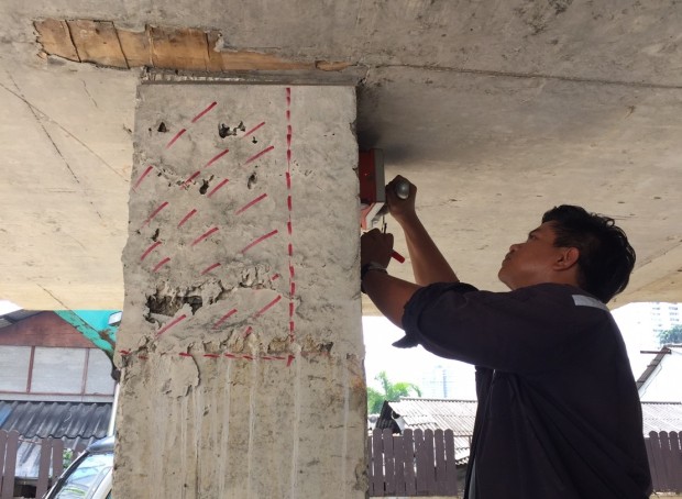 งานตรวจสอบโพรงในเสาคอนกรีตด้วยเครื่องGPR StructureScan เพื่อซ่อมเสา