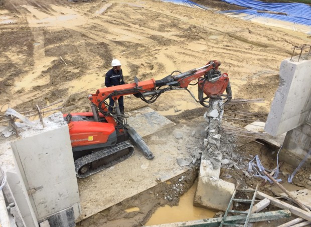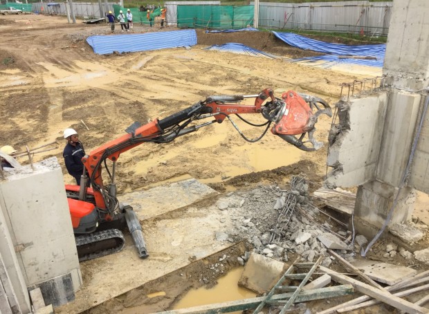 งานหนีบคานและเสาคอนกรีต โครงการMEIKO ASIA NEW WAREHOUSE นิคมสุวรรณภูมิ.