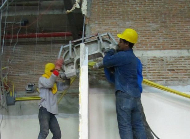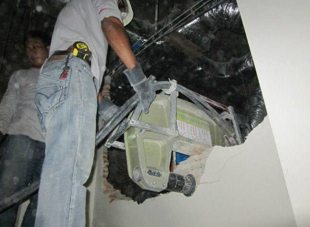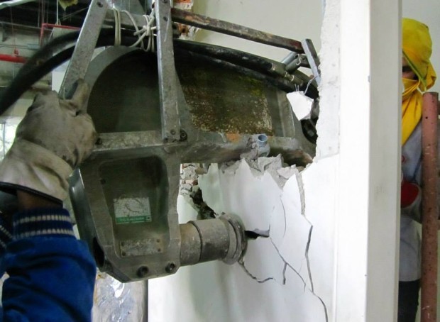งานหนีบพื้น-ผนัง ด้วยเครื่องCrusher แบบมือจับ เหมาะกับงานที่ต้องการความรวดเร็ว ปราศจากเสียงดัง ไม่มีแรงสั่นสะเทือน เหมาะกับปรับปรุงโครงสร้างในโรงพยาบาล โรงแรม เป็นต้น