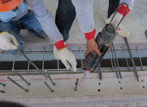 งานเจาะเสียบเหล็กด้วยอีพ็อกซี่ สามารถเสียบเหล็ก RB9, DB12, DB16, DB20, DB25, DB28 และDB32 โดยใช้งานร่วมกับ B-BOND Epoxy, HILTI RE500, หรือ RE500 SD