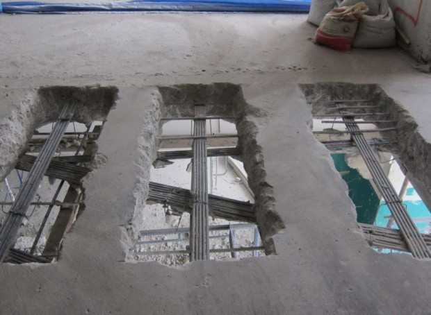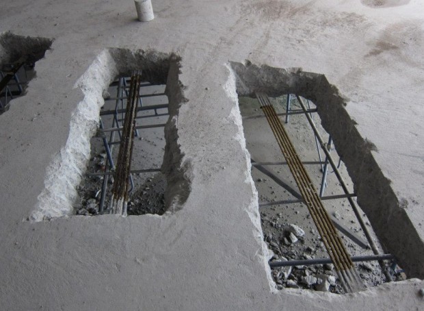 งานสกัด, งานติดตั้งหัวAnchorage, งานเทปูนเกร๊าท์ล็อคสลิงพื้นPost-Tension ระบบUN-BONDED โดยวิธีBONDED LOCK เหมาะกับงานพื้นที่ถูกตัด เพื่อให้แนวลวดสลิงรับแรงในพื้นที่ถูกตัดสามารถรับกำลังได้ตามปรกติ